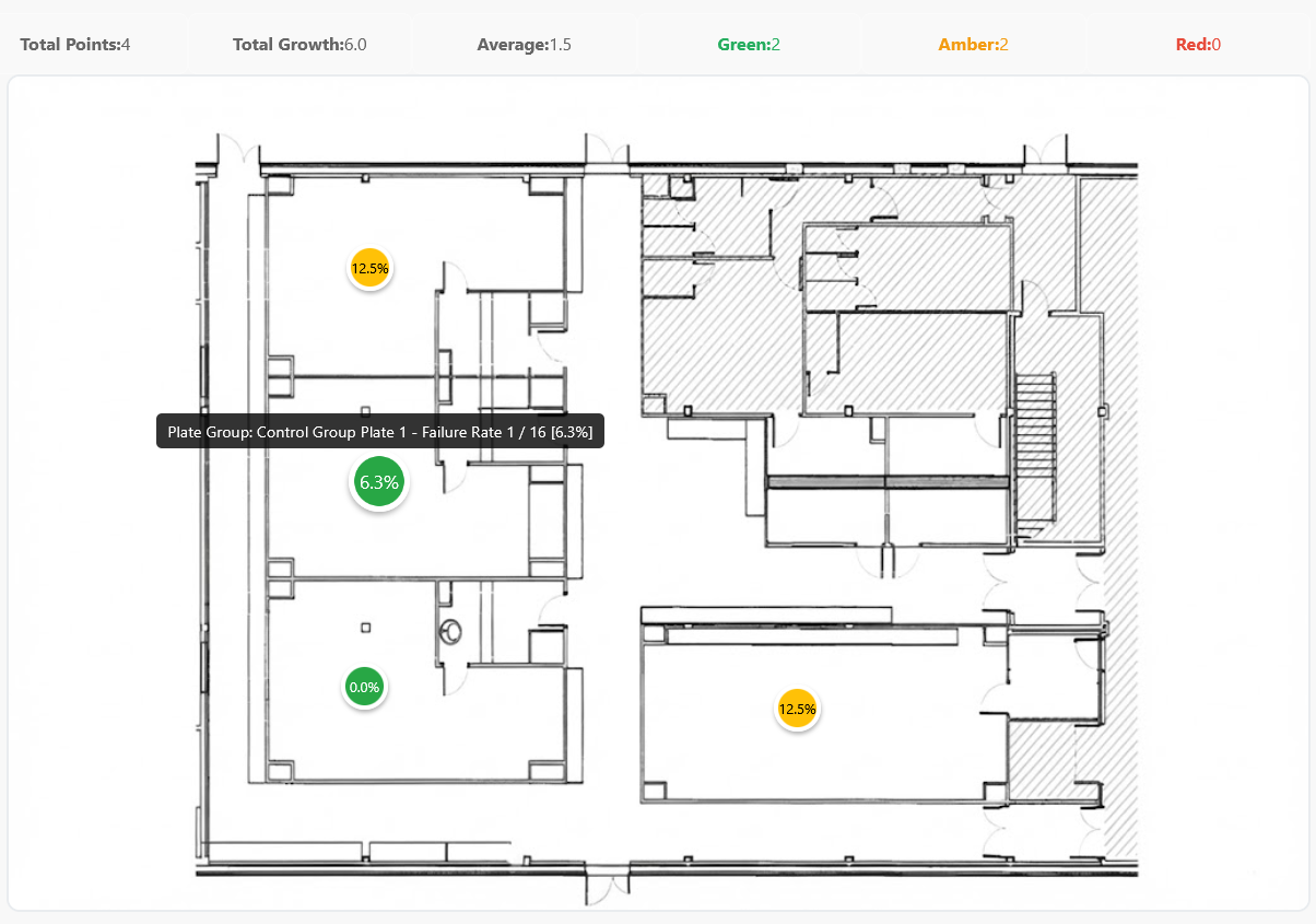 MRS Web now includes support for uploading and managing clean-room floor plans. Users and their customers can upload a floor plan for any monitored environment and then overlay failure rates for selected plate groups directly onto the image.